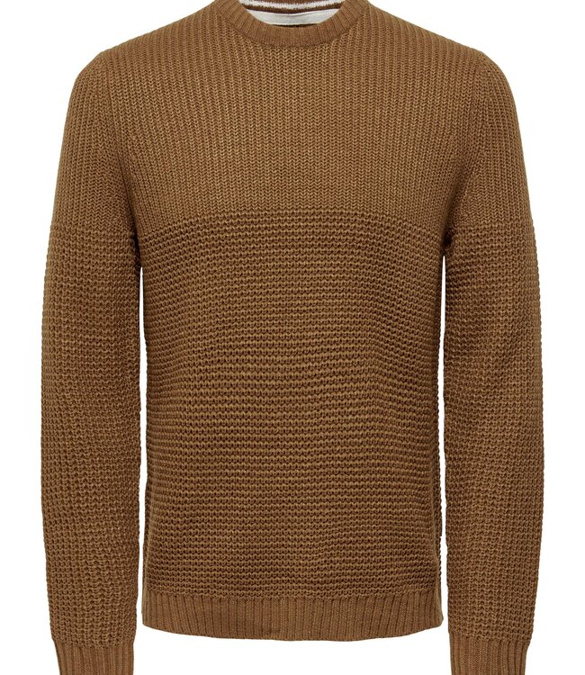 Entdecken Sie die zeitlose Eleganz des hochwertigen braunen Herrenstrickpullovers von Only & Sons. Dieser Pullover ist ein unverzichtbares Kleidungsstück für den Alltag und vereint Stil und Komfort in einem atemberaubenden Design.