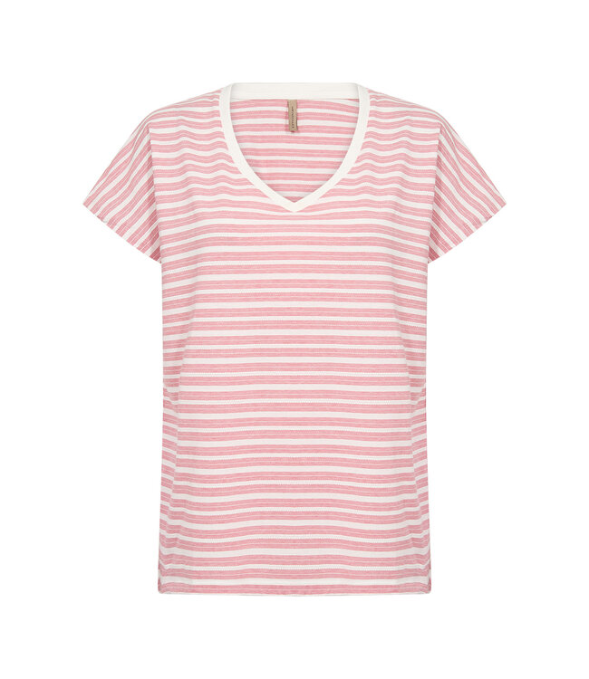 Das T-Shirt SC-CHANIE 1 besteht aus 100 % Bio-Baumwolle. Es hat einen V-Ausschnitt, kurze Ärmel und einen charmanten Streifenprint. Dieses stylische T-Shirt passt perfekt zu Jeans oder lässt sich für einen modernen Look unter einer Jacke tragen.