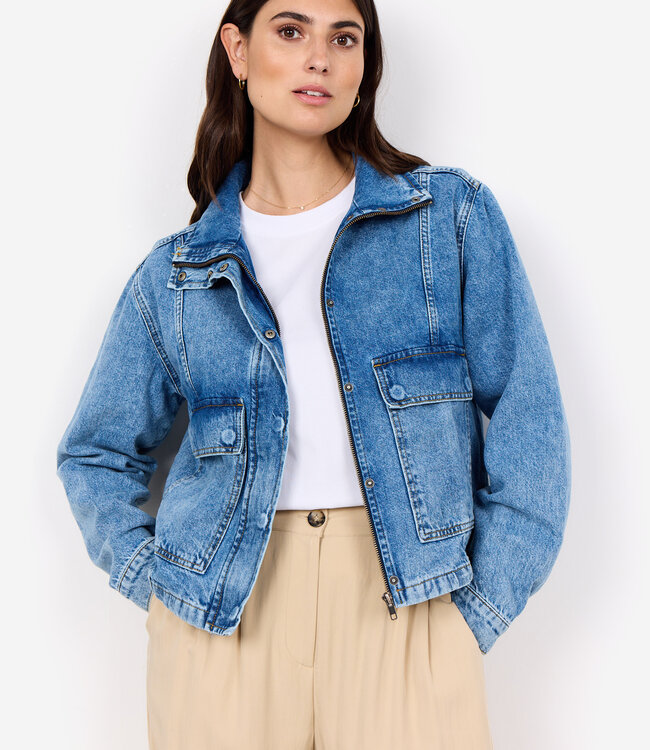 SC-DOLORES 5 ist eine kurze Jeansjacke aus 80 % Baumwolle und 20 % recycelter Baumwolle. Diese Jacke hat einen hohen Kragen, einen Knopfverschluss vorne und Pattentaschen mit sicherem Knopfverschluss. Sie lässt sich ideal über jedem Outfit tragen.