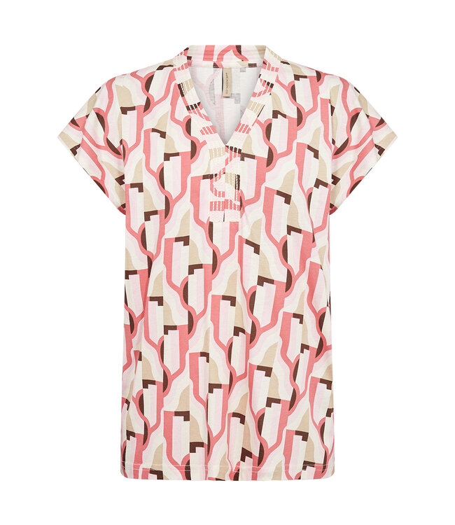 Das T-Shirt SC-FELICITY AOP 533 besteht aus 50 % Bio-Baumwolle und 50 % Viskose. Es besticht durch einen geometrischen Retro-Print, einen V-Ausschnitt und kurze Ärmel. Dieses einzigartige T-Shirt lässt sich perfekt mit Jeans oder einem Rock kombinieren und sorgt für einen lässigen und coolen Look.