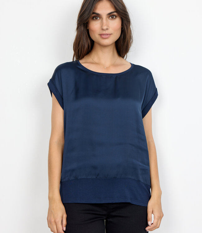 Das SC-Thilde 6 ist ein schönes und vielseitiges T-Shirt aus hochwertiger Viskose. Es hat einen Rundhalsausschnitt, kurze, hochgekrempelte Ärmel und einen raffinierten Saum. Kombinieren Sie es mit einem Blazer und einer Jeans. Lesen Sie mehr.