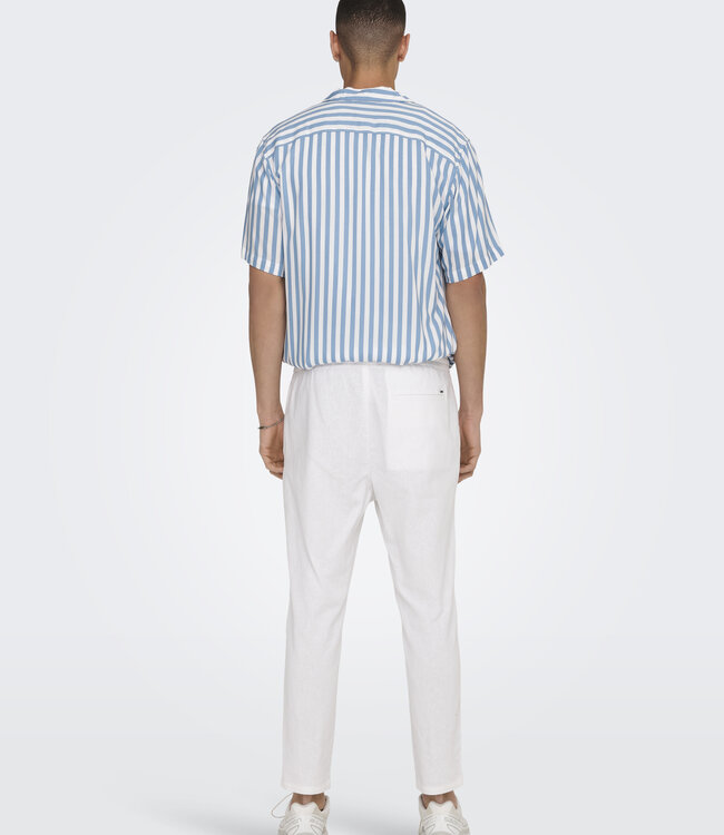 The ONSLINUS CROP 0007 COT LIN PNT NOOS from Only & Sons is a stylish men’s pair of trousers that combines comfort with a modern look. Made from a lightweight cotton-linen blend, these trousers are perfect for warmer days. The cropped length and the fresh Bright White colour give them a contemporary and summery appearance.