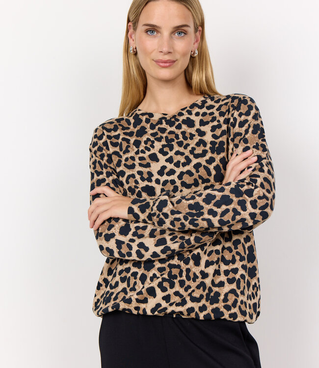 SC-FIONIA 2 is een comfortabele sweater gemaakt van 75% Modal, 20% Polyester en 5% Elastaan. Deze sweater heeft een all-over luipaardprint, een ronde hals en banden bij de manchetten en zoom. Draag hem in een bijpassende set of draag hem wat minder met je favoriete jeans of rok.