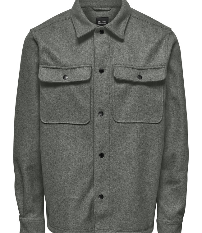 Het ONSASH OVR overhemd met wollook van Only & Sons combineert stijl en comfort in één item. Uitgevoerd in Castor Grey Melange, straalt dit overhemd een stoere en moderne uitstraling uit. De zachte stof met wolachtige textuur geeft extra warmte, terwijl de borstzakken zorgen voor een casual touch. Ideaal om open te dragen over een T-shirt of gesloten voor een meer geklede look.