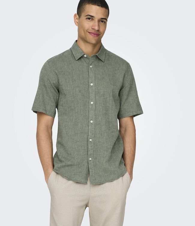 ONSCAIDEN LIFE SS SOLID LINNEN OVERHEMD – SWAMP