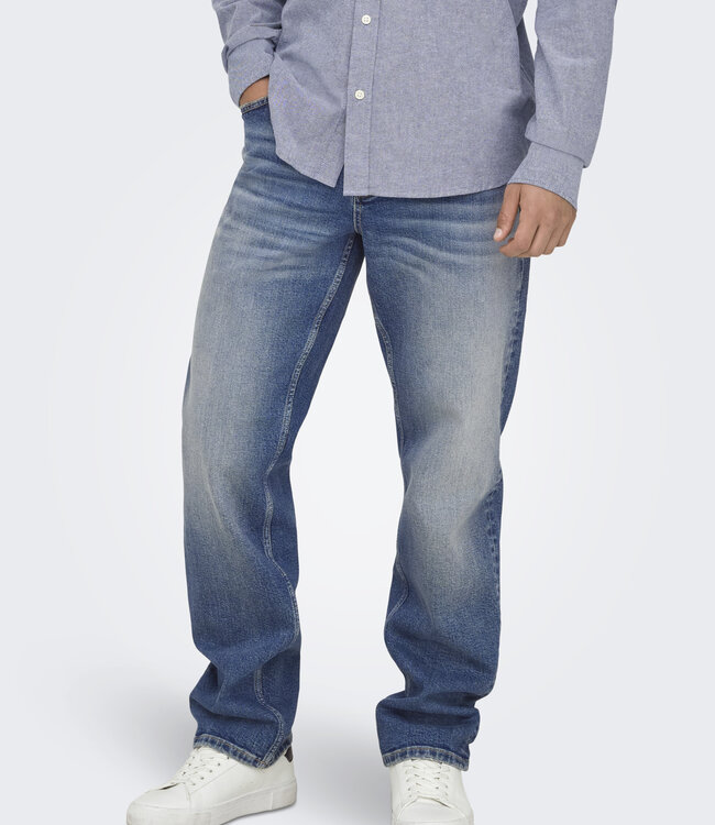 De ONSEDGE PERFORMANCE DMB 6639 is een klassieke straight-fit jeans voor heren in Dark Medium Blue Denim — ideaal voor een tijdloze denim stijl met subtiele wassing. Gemaakt van zacht, stretchy high-performance denim dat zorgt voor een comfortabele pasvorm en draaggemak gedurende de hele dag.
