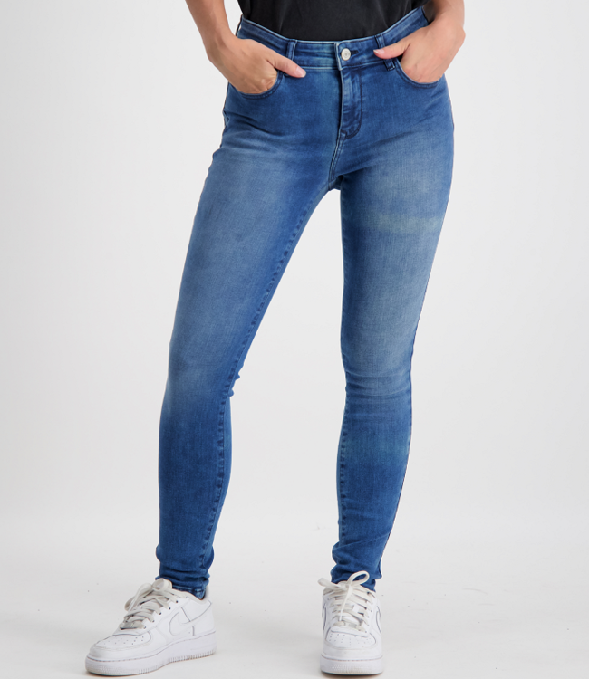 Deze blauwe kleur dames jeans is een super skinny model hierdoor heeft de denim een goede aansluitingsvorm die lekker strak zit en super veel stretch heeft.