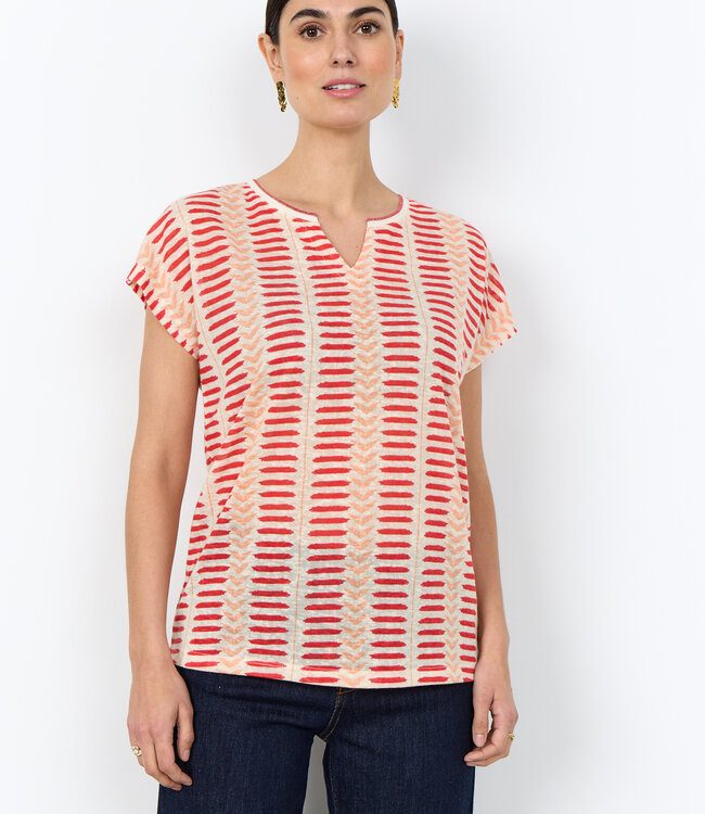 Het SC-ARETHA 45 T-shirt is gemaakt van 100% gerecycled polyester. Het shirt heeft een klassiek ontwerp met korte mouwen, een V-hals en een opvallende geometrische print. Combineer dit stijlvolle T-shirt met een jeans voor een relaxte look of stop het in een rok voor een meer verfijnde uitstraling.
