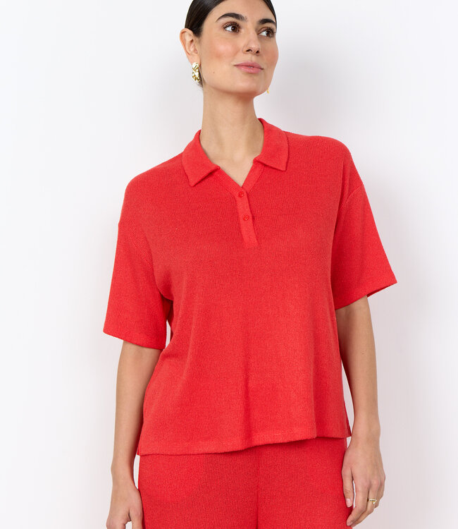 De SC-DELIA 9 blouse is gemaakt van 60% LENZING™ ECOVERO™ viscose, 38% gerecycled polyester en 2% elastaan. Deze blouse heeft een zachte ribstructuur, een klassieke kraag en een sluiting met drie knopen, en een relaxte pasvorm. Combineer hem met een nette pantalon of een casual jeans voor een stijlvolle look.