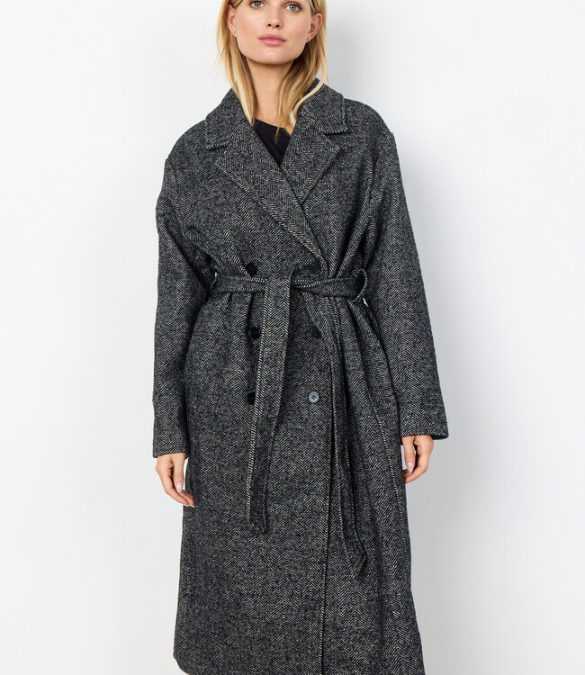 Met de SC-Mirella 1 voeg je moeiteloos stijl en elegantie toe aan je garderobe. De klassieke reverskraag geeft een vleugje tijdloze klasse aan deze jas, terwijl de dubbele rij knopen zorgt voor een verfijnde uitstraling. De schuine steekzakken voegen niet alleen functionaliteit toe, maar ook een moderne touch aan het ontwerp.
